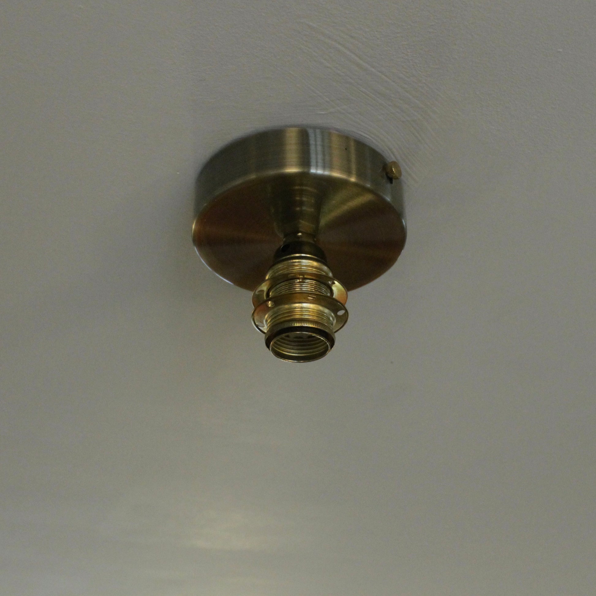 A simple, quality antique brass finish ceiling rose with brass finish lamp holder and 2 metal shade rings for gripping your lampshade.